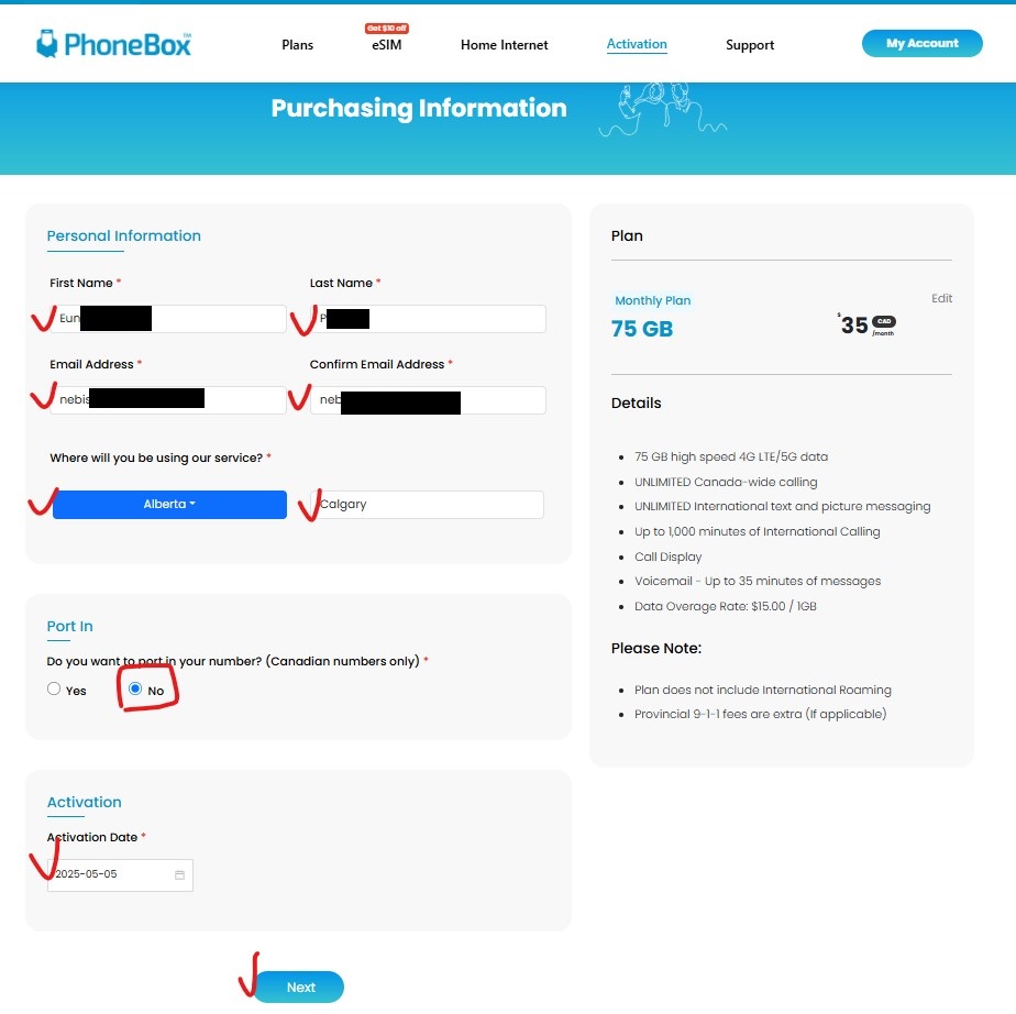 - PhoneBox 웹사이트로 접속 합니다. https://gophonebox.com/activation/